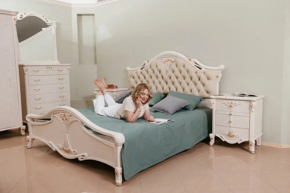 Кровать двуспальная Amelia (кож.изг.), слоновая кость, 180х200, ALP00000895