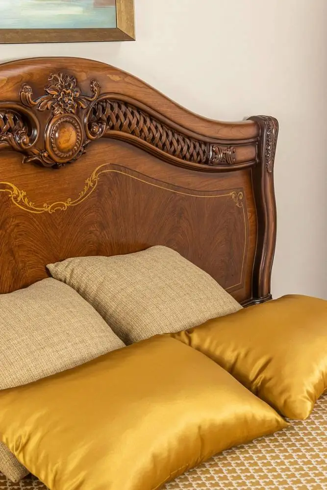Кровать двуспальная Beatrice выполнена в классическом стиле из массива дерева. Респектабельная, эстетичная и торжественная мебель для спальных комнат, с эффектным и запоминающимся дизайном, станет богатым и почетным украшением домашнего интерьера, наполнив его уютом, роскошью и практичностью. Эта высококачественная, уникальная кровать обладает элитной внешностью и элегантным дизайном. Модель украшают разнообразные художественные резные элементы ручной работы, благородные оттенки, плавные линии, природная красота древесины и изящные формы. Натуральная и экологически чистая мебель разрабатывалась лучшими европейскими дизайнерами, исполняется по итальянским технологиям производства и имеет долгий срок службы.