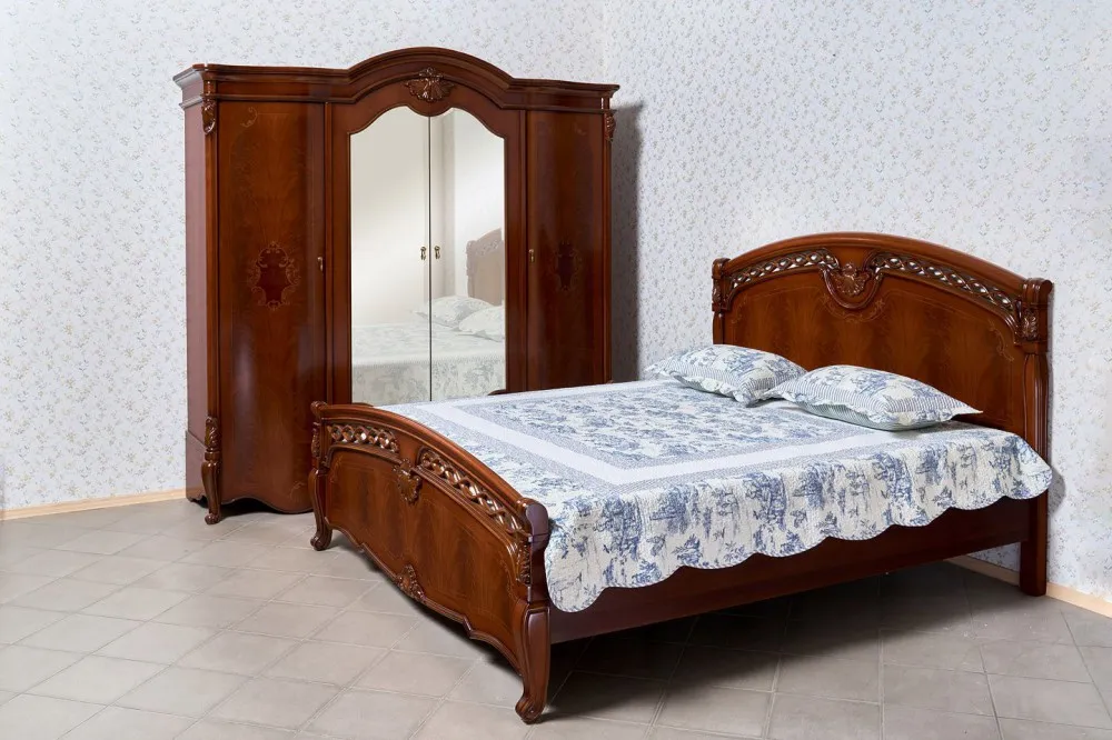 Кровать двуспальная Francheska выполнена в классическом стиле из натуральных материалов. Респектабельная, эстетичная и торжественная мебель для спальных комнат, с эффектным и запоминающимся дизайном, станет богатым и почетным украшением домашнего интерьера, наполнив его уютом, роскошью и практичностью. Эта высококачественная, уникальная, добротная и популярная коллекция, обладает элитной внешностью и элегантным дизайном. Модели украшают разнообразные художественные резные элементы, благородные оттенки, плавные линии и изящные формы. Натуральная и экологически чистая мебель имеет долгий срок службы.