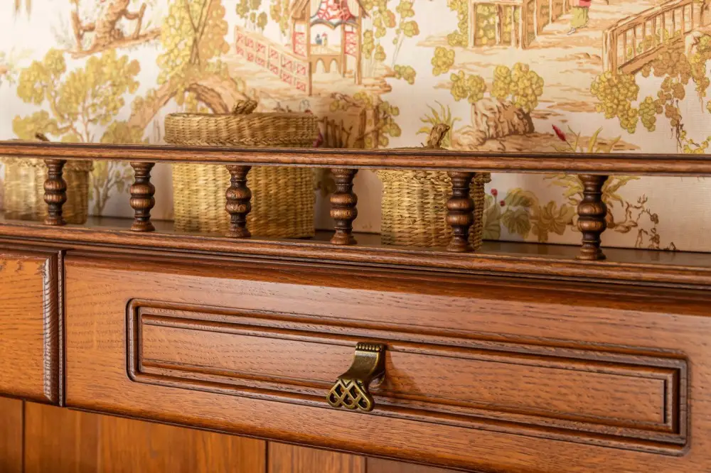 Буфет «Марта 1» имеет глубокий, благородный цвет, элегантная форма, эстетичная и торжественная мебель, с эффектным и запоминающимся дизайном, станет богатым и почетным украшением домашнего интерьера, наполнив его уютом и практичностью. Фасадные элементы изготовлены из массива ореха. В буфете в верхней части расположены полки с балюстрадами, в нижней части предусмотрен отсек для бутылок, задняя стенка декорирована, что делает буфет более функциональным и интересным. В мебели использована качественная фурнитура европейского качества.
