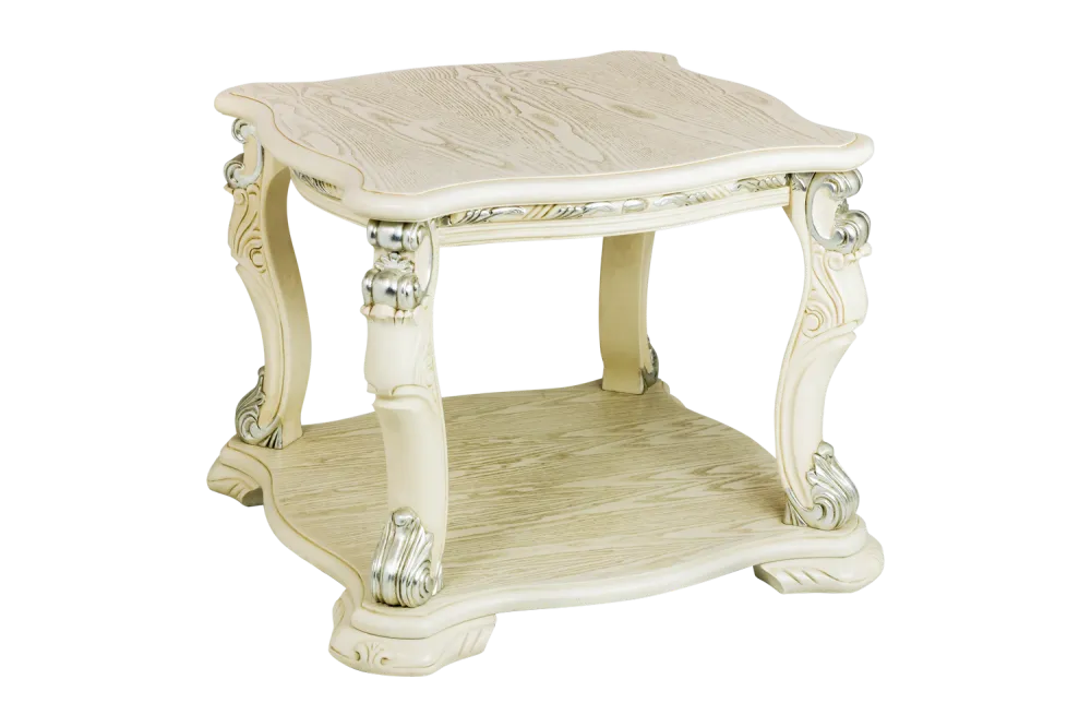 Столик журнальный Margaret создаст роскошную и романтичную атмосферу дворцовой Франции, станет украшением интерьера, наполнив его уютом и роскошью. Столик в классическом стиле из массива северной березы в шпоне ясеня, покрыт эмалью. Резные ножки подчеркивают легкость и изящество композиции. Идеальное акцентное дополнение к гостиной в классическом стиле, орнамент и резьба повторяет основные декоративные элементы. Это прекрасный декоративный элемент, для завершения целостности композиции в едином стиле рококо. Мебель из натурального дерева не выделяет вредных веществ и имеет долгий срок службы. Каждая деталь изделия вырезана вручную, а патина из натурального серебра и нежные изящные линии придают изделиям особенно элегантный и роскошный вид. Разнообразие мебели поможет обустроить любое помещение: гостиную, столовую, кабинет, спальню.