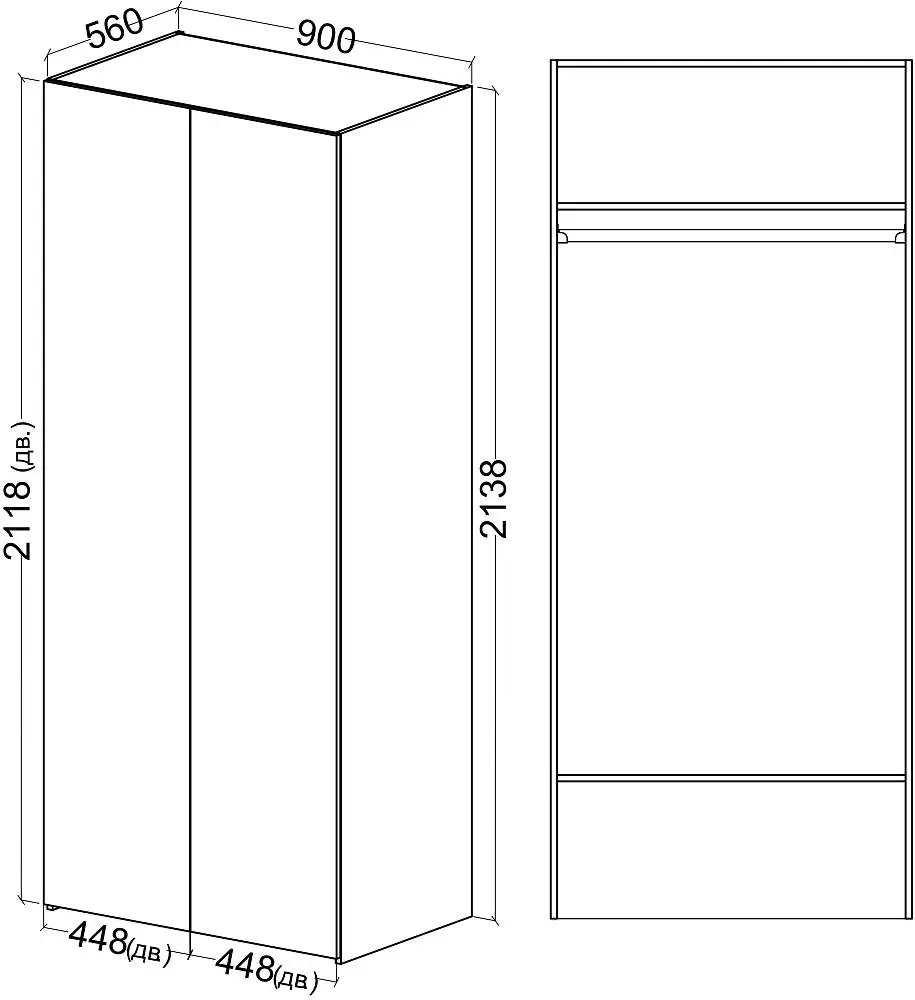 Шкаф BASICO 900/560 штанга Tip-on для прихожей ЛДСП 2750*1830*16 ЧФМК