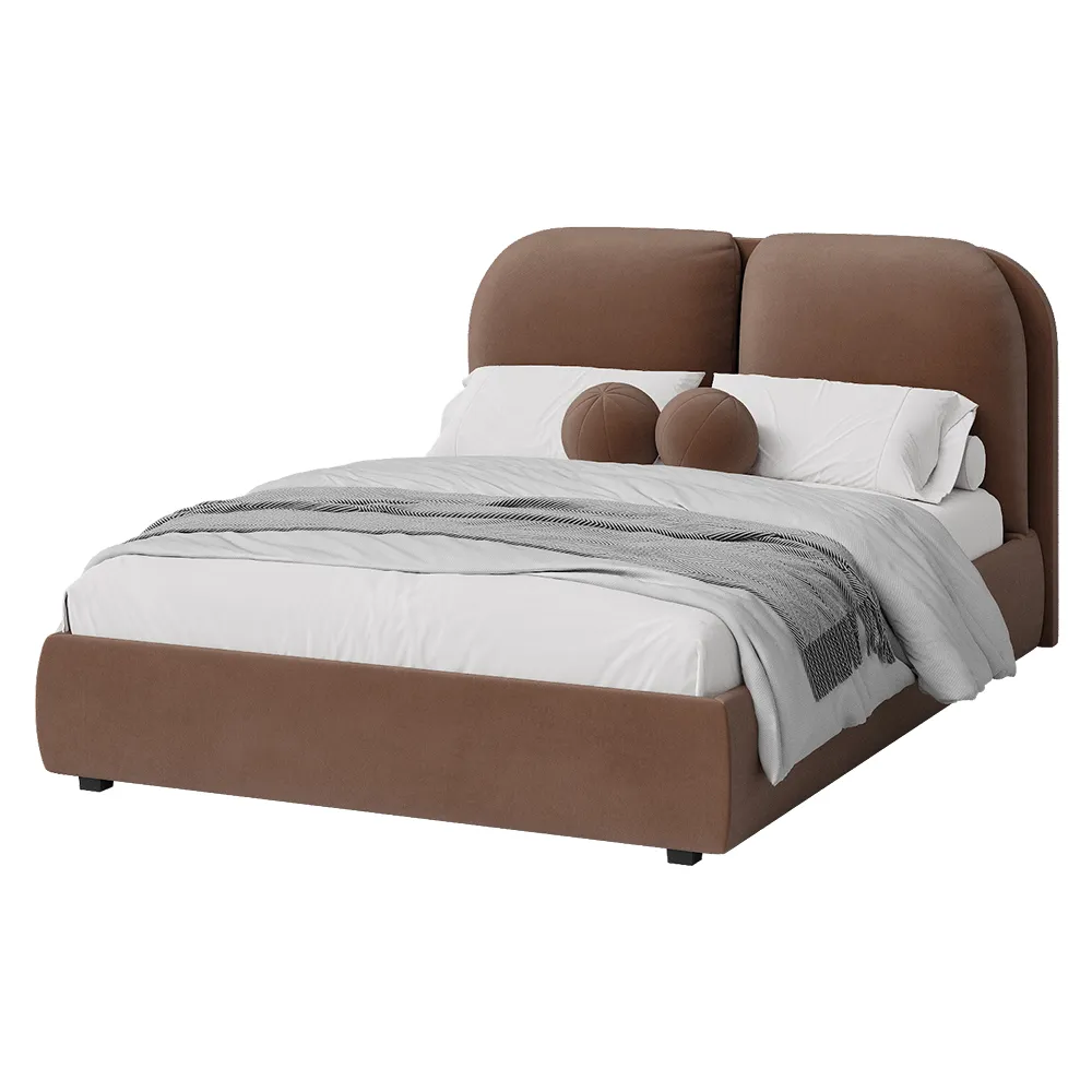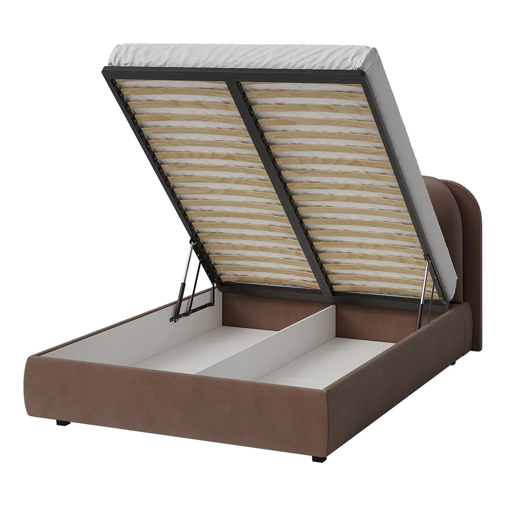 Кровать двуспальная мягкая BASSIA 140х200 с подъемным механизмом, ящиком для хранения и съемными подушками венге коричневый