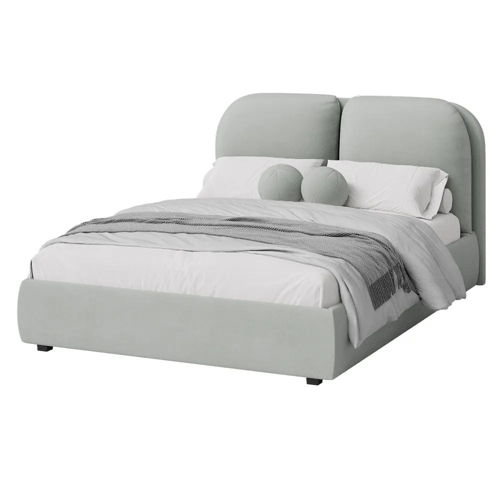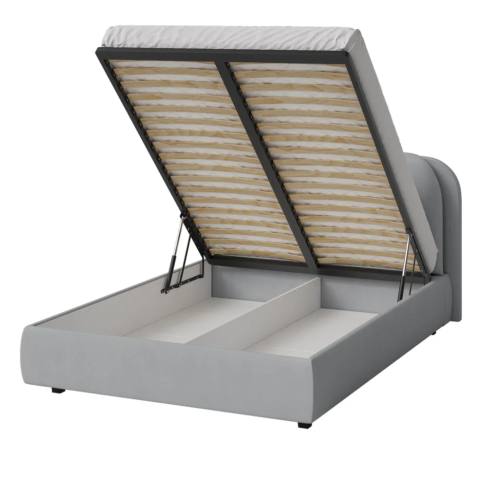 Кровать двуспальная мягкая BASSIA 140х200 с подъемным механизмом, ящиком для хранения и съемными подушками венге светло-серый