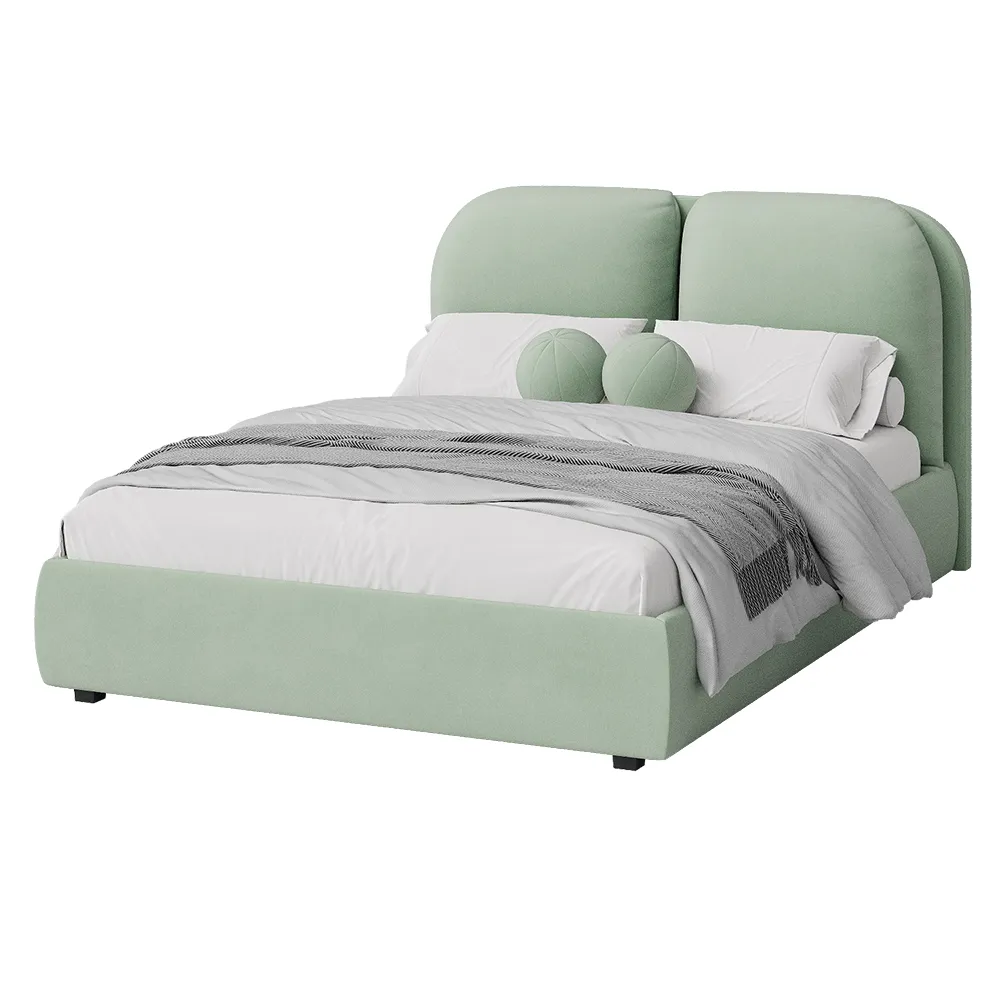 Кровать двуспальная мягкая BASSIA 140х200 с подъемным механизмом, ящиком для хранения и съемными подушками венге светло-зеленый