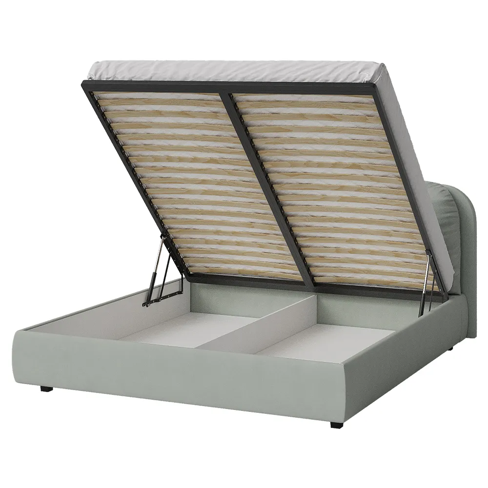 Кровать двуспальная мягкая BASSIA 200х200 с подъемным механизмом, ящиком для хранения и съемными подушками венге серо-зеленый