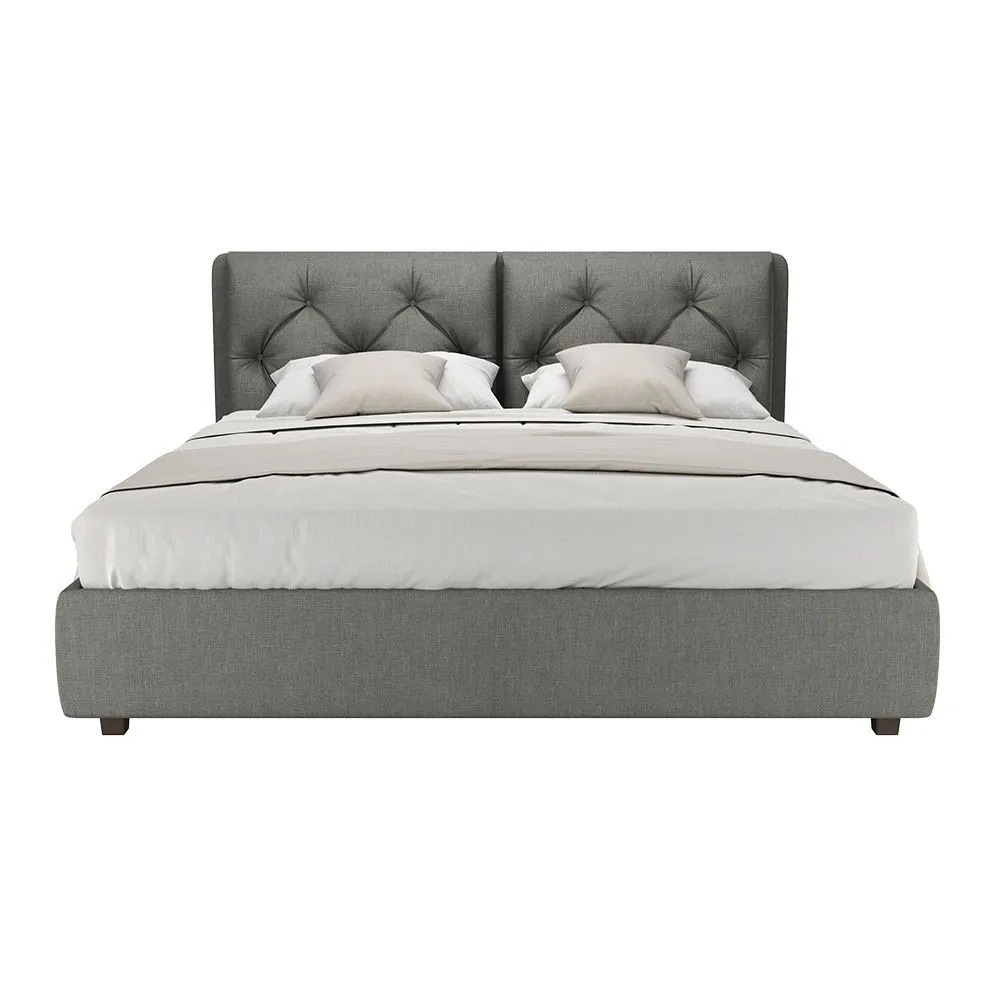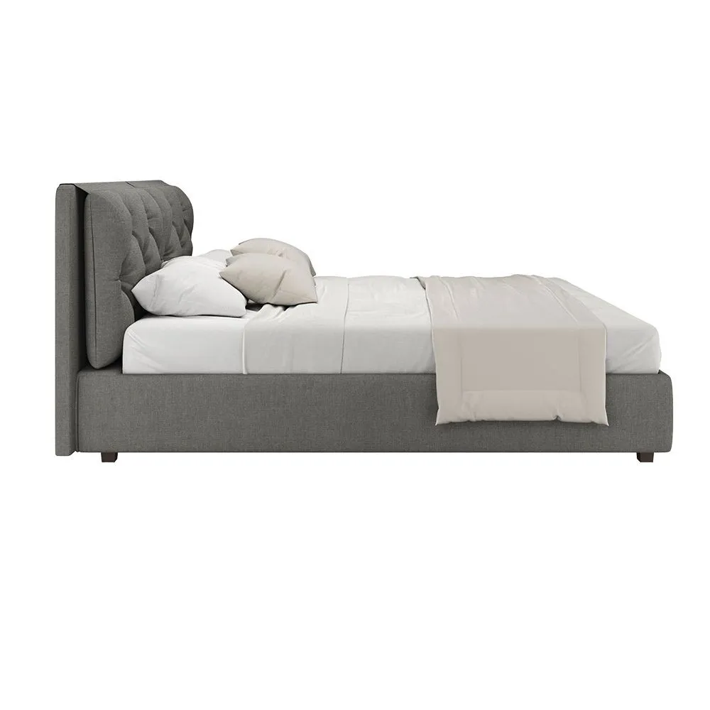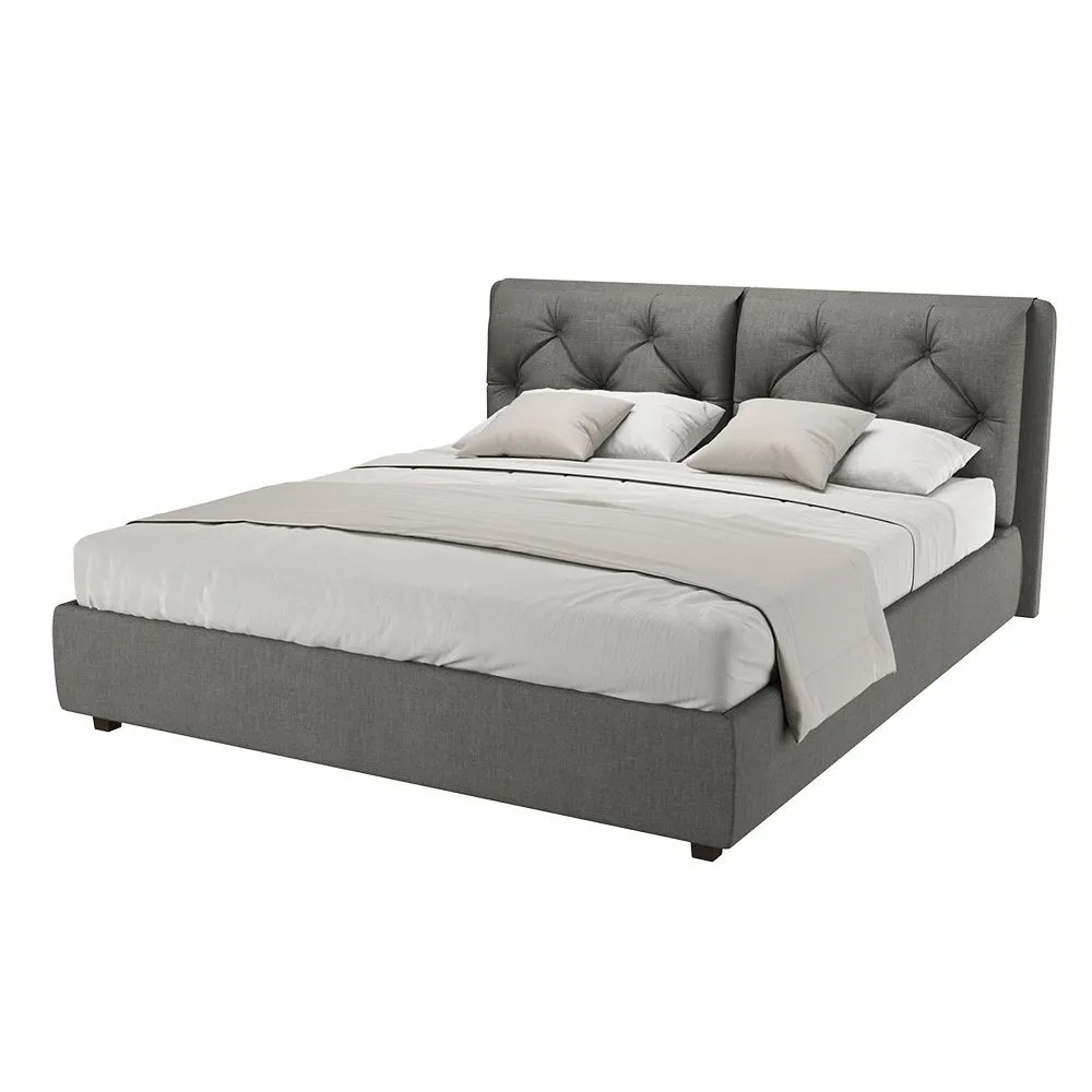 Кровать двуспальная мягкая DIONISIA 180х200, с подъемным механизмом, ящиком для хранения и съемными подушками с утяжкой, темный орех серый