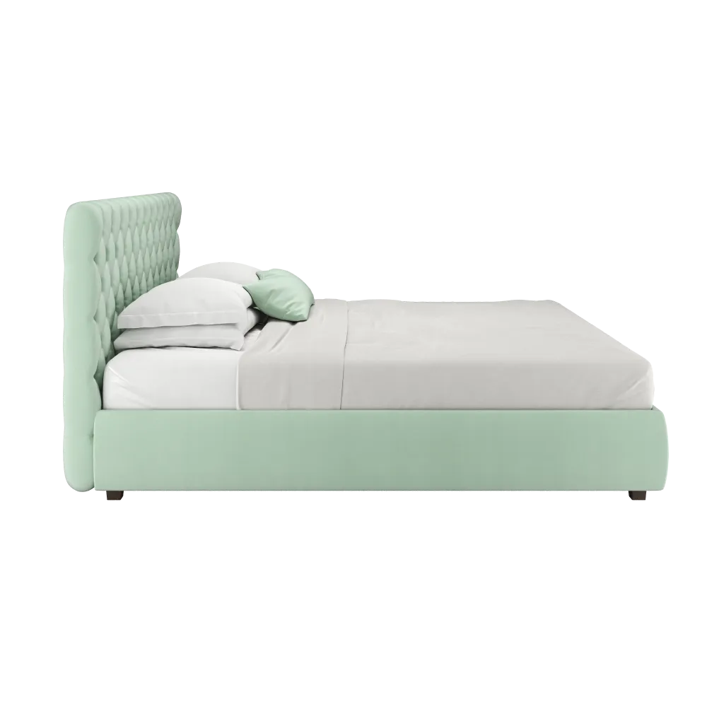 Кровать двуспальная GARDENIA, с каретной стяжкой, 1800х2000, темный орех светло-зеленый