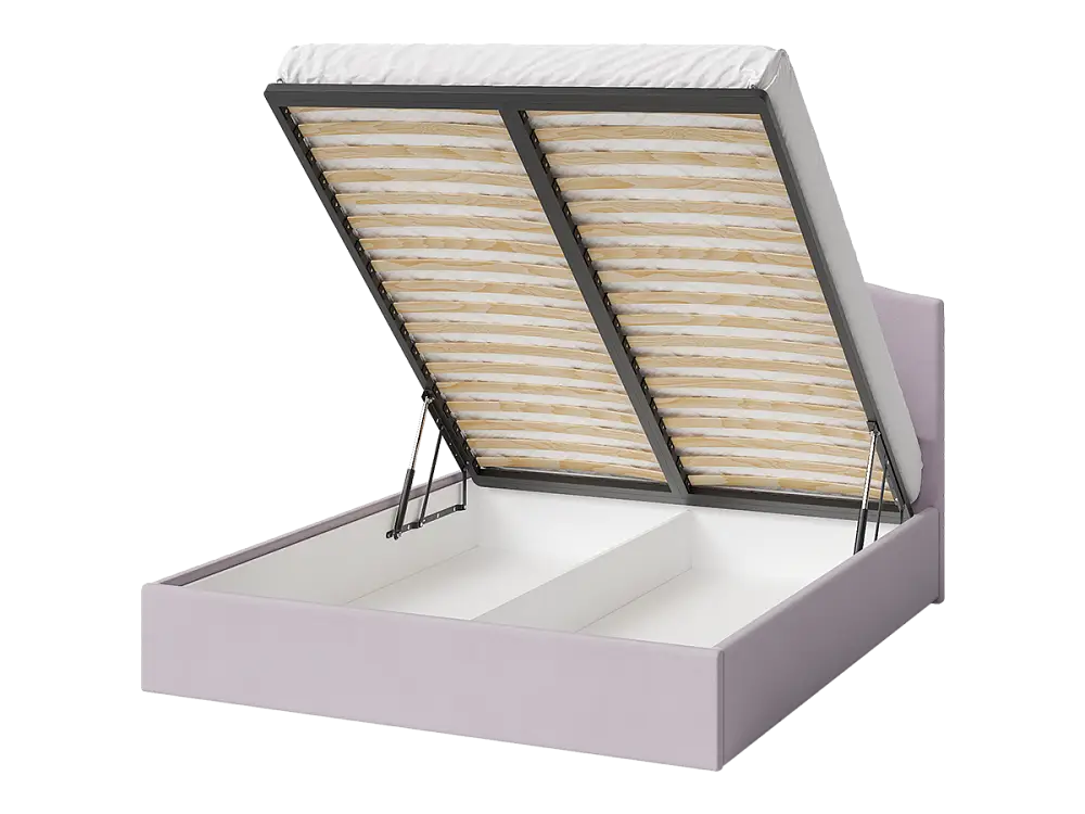 Ортопедическое основание изготовлено из прочной березовой фанеры. Подъемный механизм оснащен газлифтами, позволяющими легко и бесшумно открывать и закрывать спальное место. Вместительный бельевой ящик предоставляет достаточно пространства для хранения