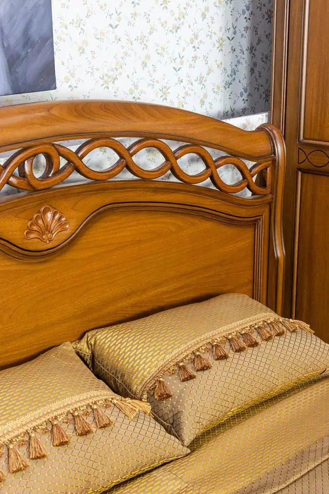 Кровать двуспальная Patricia выполнена в классическом стиле. Респектабельная, эстетичная и торжественная мебель для спальных комнат, с эффектным и запоминающимся дизайном, станет богатым и почетным украшением домашнего интерьера, наполнив его уютом, роскошью и практичностью. Эта высококачественная, уникальная, добротная и популярная коллекция, обладает элитной внешностью и элегантным дизайном. Модели украшают разнообразные художественные элементы, благородные оттенки, плавные линии и изящные формы.