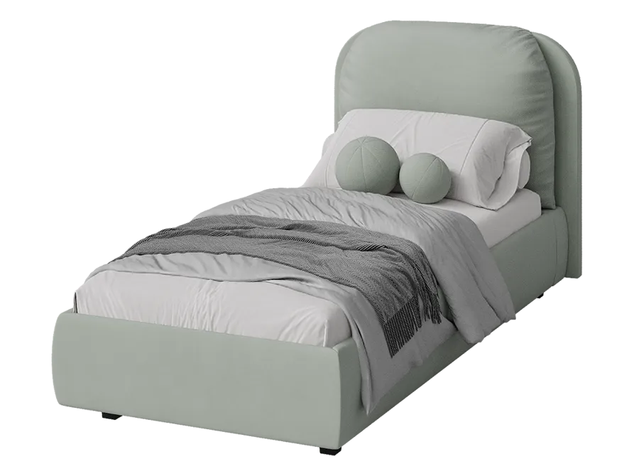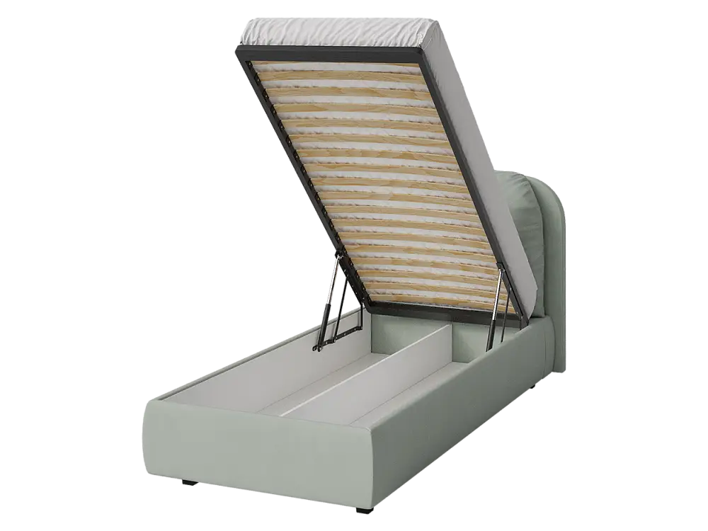 Кровать односпальная мягкая BASSIA 90х200 с подъемным механизмом, ящиком для хранения и съемной подушкой венге серо-зеленый