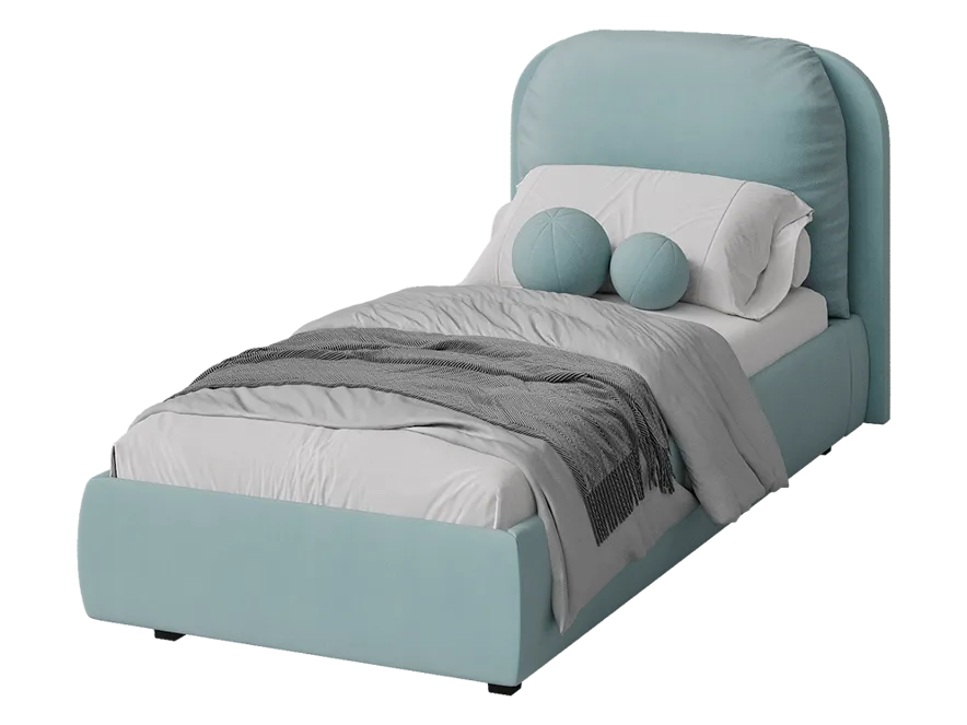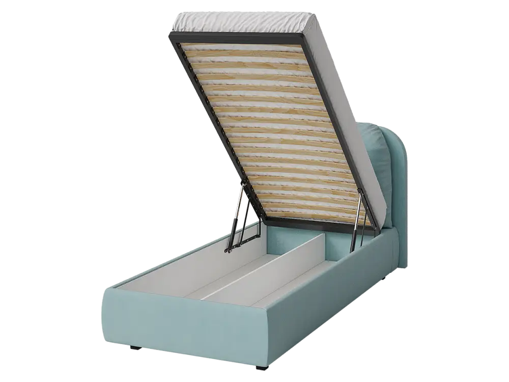 Кровать односпальная мягкая BASSIA 90х200 с подъемным механизмом, ящиком для хранения и съемной подушкой венге светло-голубой