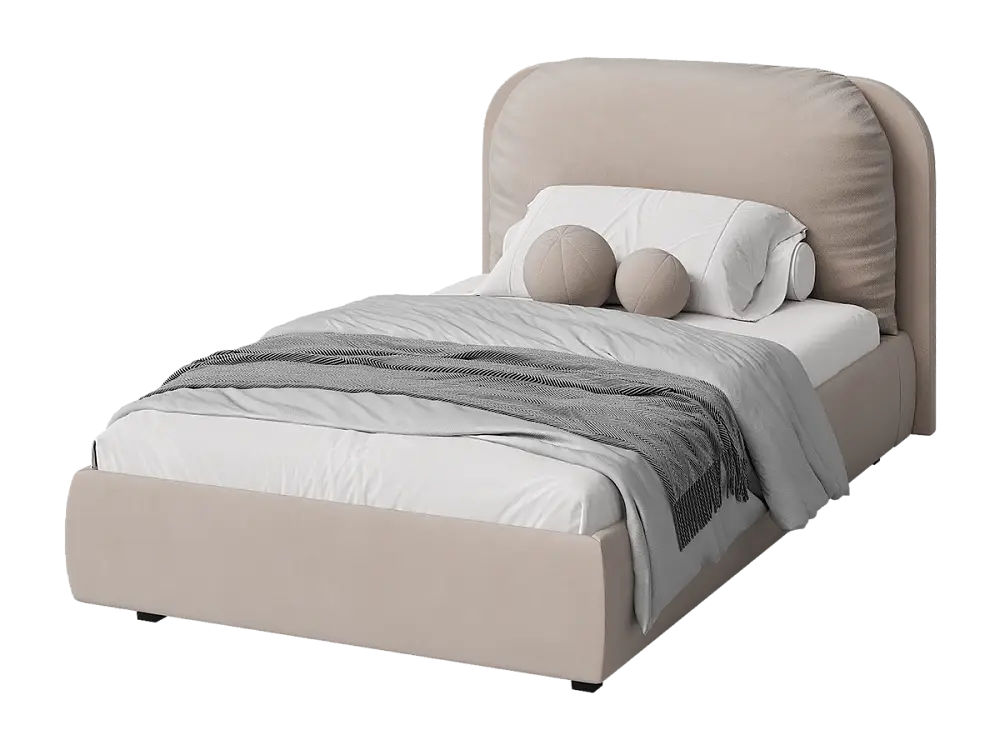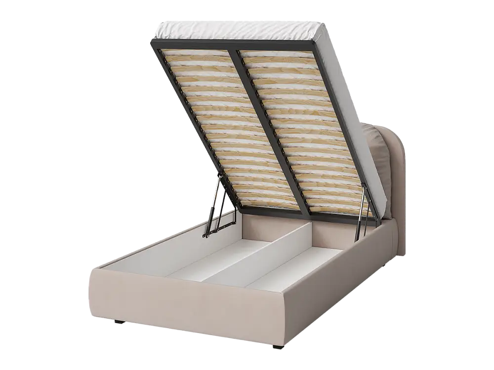 Кровать полутораспальная мягкая BASSIA 120х200 с подъемным механизмом, ящиком для хранения и съемной подушкой венге кремовый
