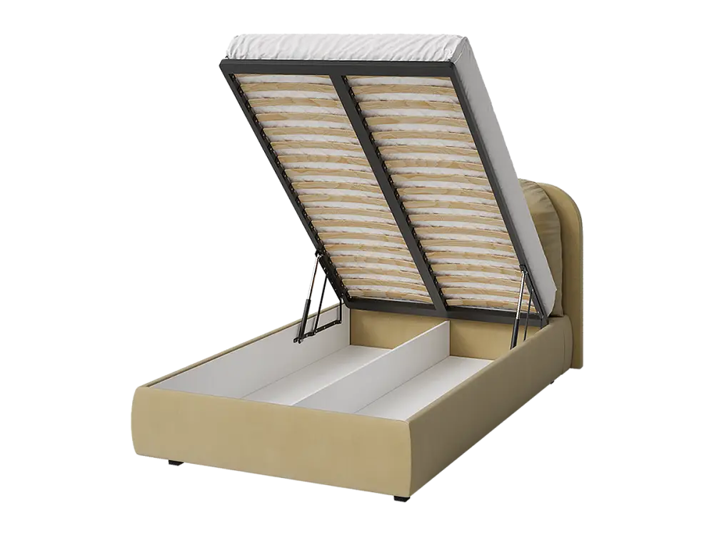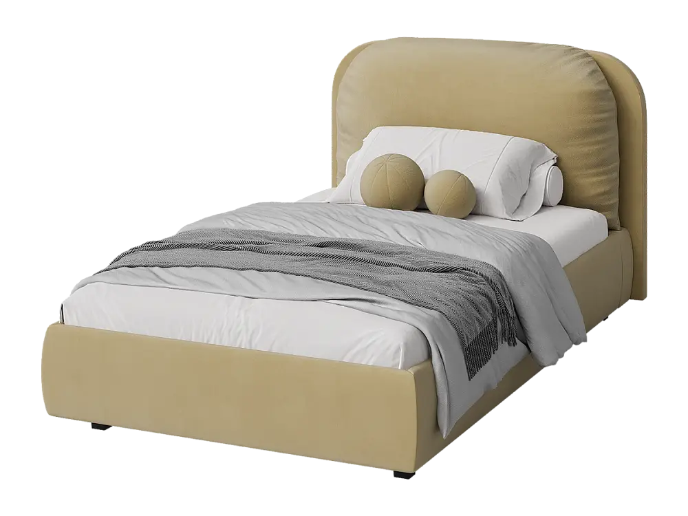 Элегантная и современная кровать. Благодаря продуманной конструкции изголовья, кровать превращается в многофункциональную зону отдыха, где можно не только спать, но и наслаждаться любимыми занятиями в комфортных условиях: вечернее чтение при мягком освещении, просмотр любимых сериалов, разговоры по телефону, утренний кофе в постели. Изножье имеет закругленные углы для дополнительной безопасности и эстетики. Кровать производится в нескольких вариантах тканей: из мягкого велюра, уютного букле и практичной рогожки. Все ткани отличаются исключительной мягкостью, высокой стойкостью к истиранию и легкостью в уходе. Ортопедическое основание изготовлено из прочной березовой фанеры, которое способствует правильному положение позвоночника во время сна и обеспечивает комфортный отдых. Подъемный механизм оснащен газлифтами, позволяющими легко и бесшумно открывать и закрывать спальное место. Вместительный бельевой ящик предоставляет достаточно пространства для хранения. Подушка шар в комплект не входит.