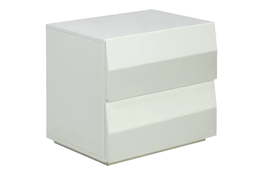 Функциональный, при этом, малогабаритный элемент корпусной мебели. Дизайн фасадов тумбы — ромбовидный. Ручки скрыты под основание фасада. Тумба стоит на скрытом цоколе. Состоит из 2-х вместительных выдвижных ящиков. Тумба выполнен из крашенного МДФ в три слоя, покрыта лаком и отполирована, есть защита от УФ лучей, выдвижные ящики с доводчиками, для плавного хода.