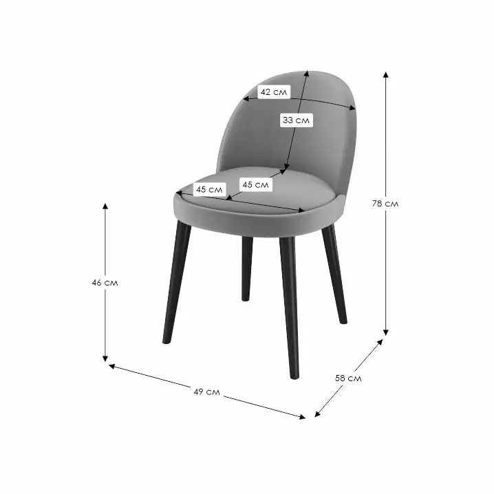 Стул может быть изготовлен в тканях разных оттенков и материалов. Нежный и легко очищаемый велюр, прочная фактурная рогожка или износостойкий жаккард - решать вам.