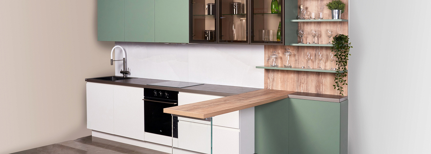 Вторым шагом необходимо выбрать комплектацию. От этого выбора будет зависеть какая фурнитура и какого качества будет использоваться в вашей кухне, что непосредственно повлияет на удобство использования.